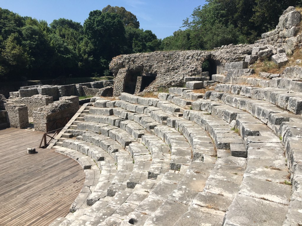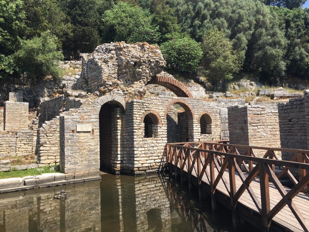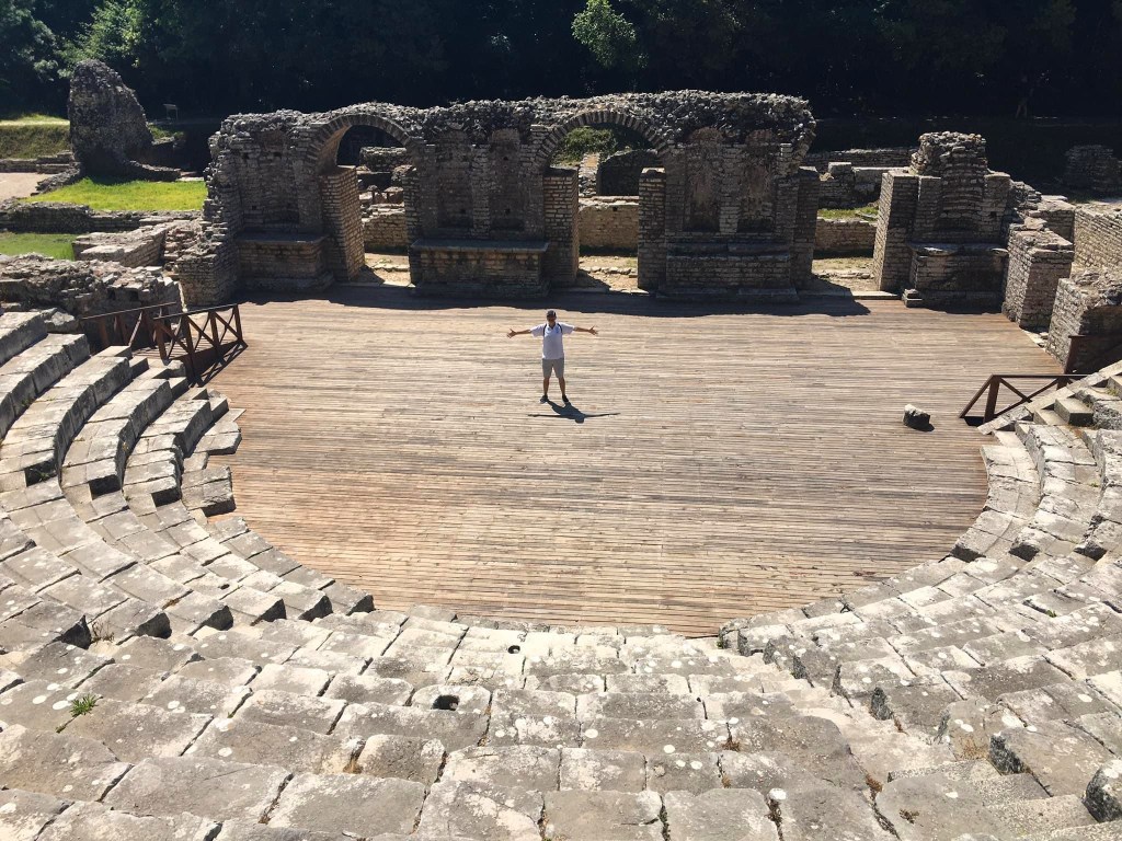 Butrint é um dos melhores passeios a partir de Sarandë para quem, como nós, é louco por história. O local é o Patrimônio Mundial da UNESCO mais visitado em toda a Albânia, pois o sítio arqueológico é considerado um “microcosmo da história do Mediterrâneo”.