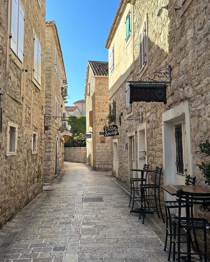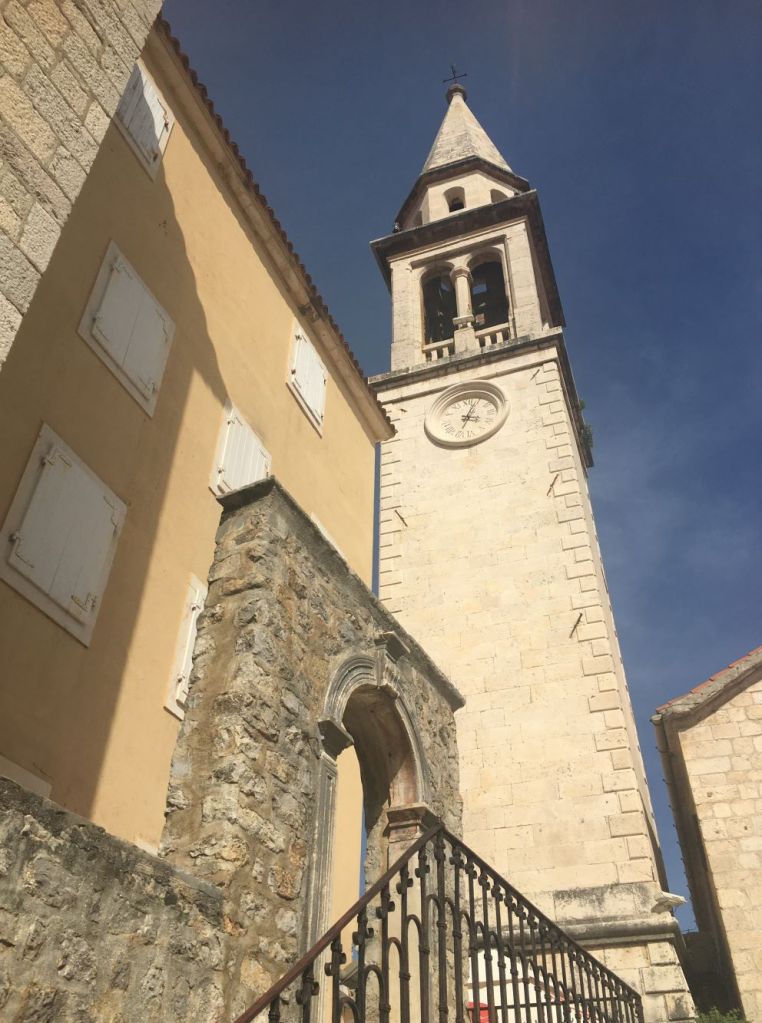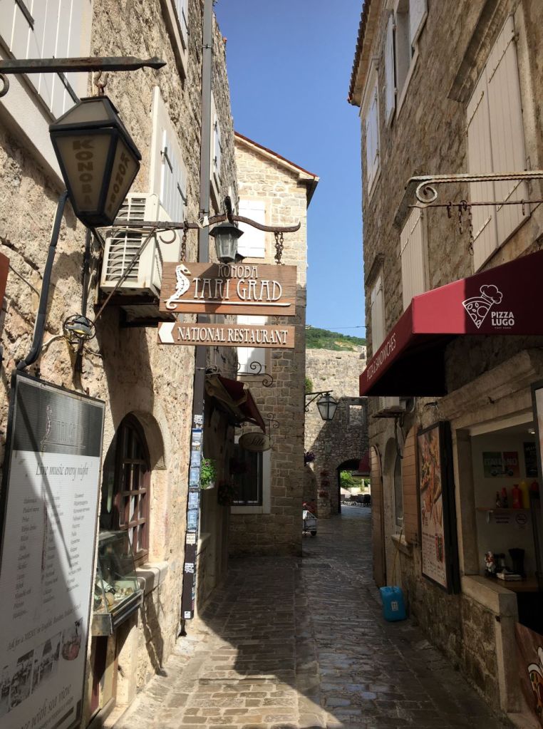 A Cidade Velha de Budva (Stari Grad), é do século V a.C., e ao longo do tempo viu um desfile colorido de moradores, incluindo ilírios, romanos, bizantinos, venezianos e otomanos. O centro histórico é rodeado por muralhas e o que vemos hoje é do período medieval, quando ela era governada pela República de Veneza, que dominou também a Croácia e uma parte da Albânia, como vimos em Butrint e Corfu na Grécia.