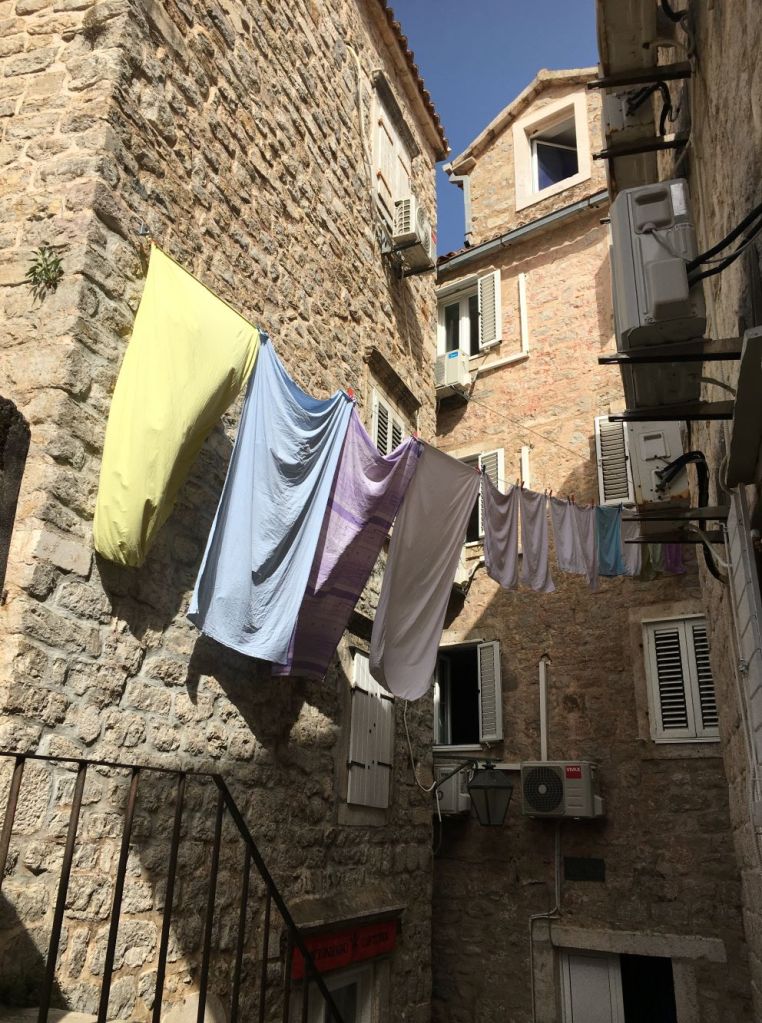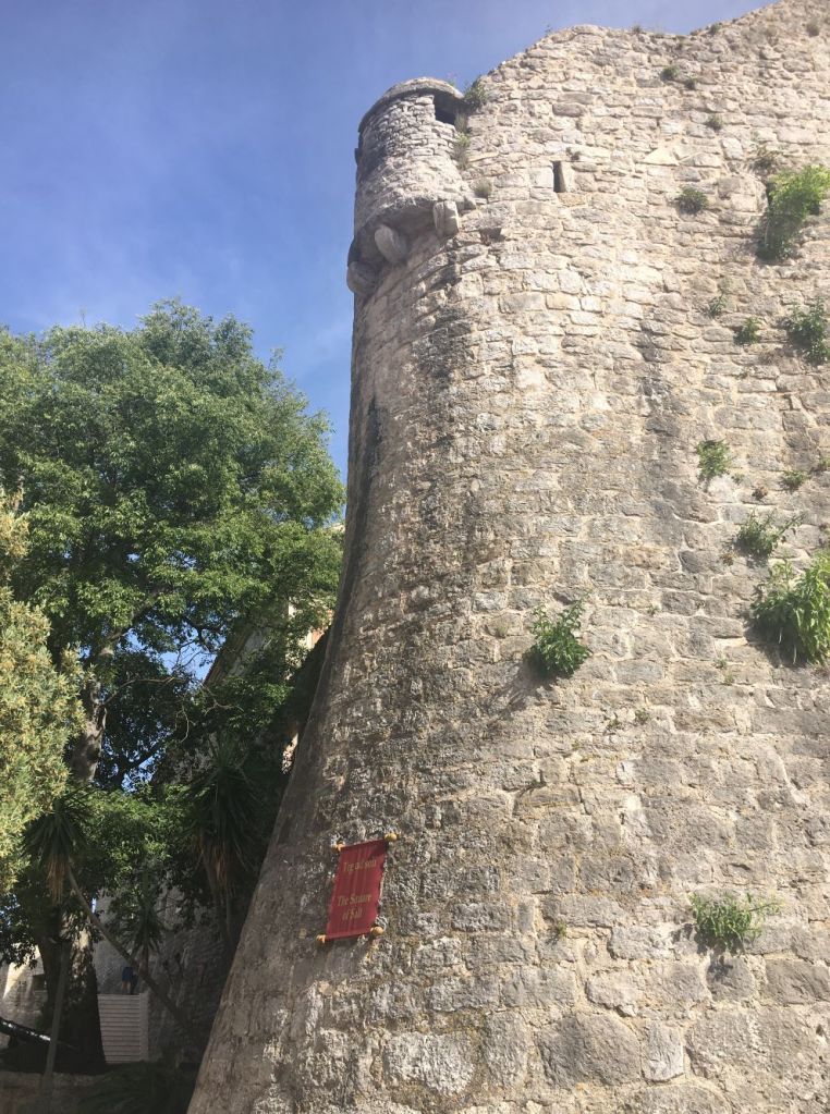 Aliás, mesmo não fazendo parte da União Europeia, a moeda é o euro, o que deixa o país bem caro para a gente. Entretanto, se a pessoa vai pra uma cidade que tem 2.500 anos, de frente pro mar Adriático, com um centro velho fortificado e todo em pedra, vai se hospedar fora dos muros? Aí eu pensei: nuuunca! Vendo o almoço pra comprar a janta mas vou ficar aqui dentro!!! E não arredo o pé!