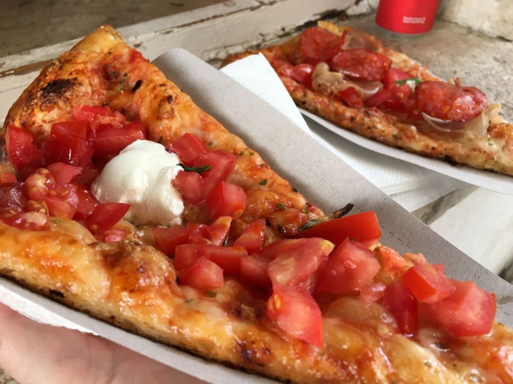 O euro a mais de 5 pratas também não ajuda muito. Então a nossa saída é sempre alternar os restaurantes com a famosa e caprichada fatia de pizza dos quiosques da rua! Grandes e gostosas e por apenas 2,50. Na Stari Grad a Pizza Lugo é uma ótima pedida. Ela fica na rua Vrzdak, em frente à Konoba (Taverna) Galeb. A gente adorou!