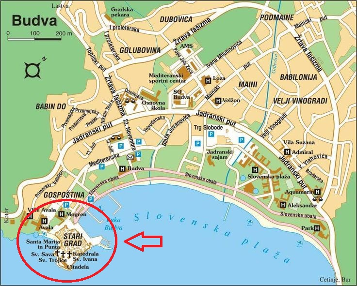 Perto do centro histórico de Budva há duas praias, a Old Town e Mogren Beach. A Old Town fica praticamente grudada às muralhas da fortaleza. É um destino popular para turistas que querem aproveitar o sol e as águas cristalinas do Adriático. Ela é cercada por penhascos rochosos e tem vistas deslumbrantes da fortaleza e do mar.