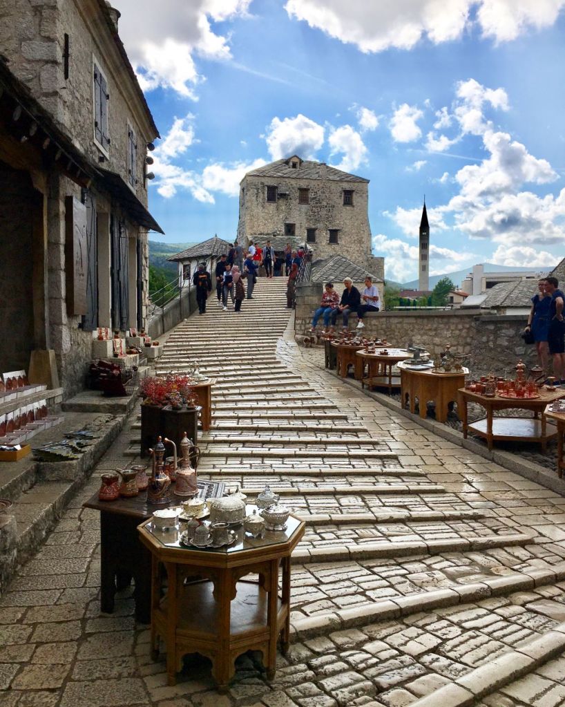 “Eu amo de um amor que jamais saberei expressar essas pequenas ruas com suas casas de porta e janela…” E como no poema de Mário Quintana, não tem como não amar a arquitetura antiga, simples e desordenada de Mostar. Ao longo dos séculos moldada por sobre as rochas, encrustando ali suas casas. Passamos horas perambulando e admirando cada cantinho.