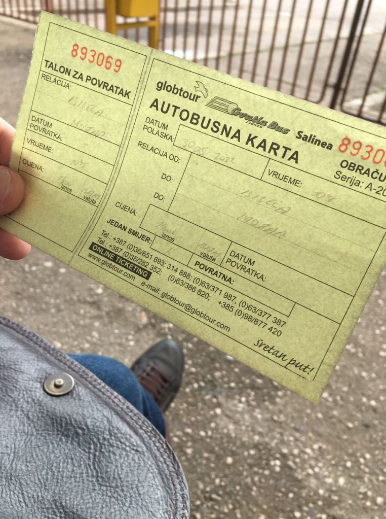 Curiosidade: na Bósnia (e também em Montenegro) se você viaja de ônibus com mala ou mochila grande é preciso pagar pela bagagem em dinheiro, para o motorista, mesmo já tendo comprado a passagem no guichê. São 2 BAM por mala (pouco mais de 5 reais). Portanto a dica é sempre ter algum trocado.