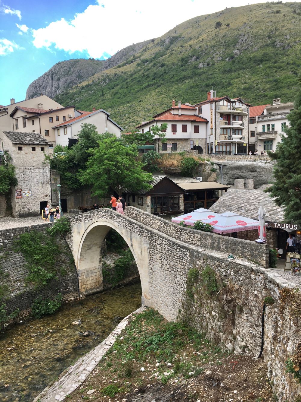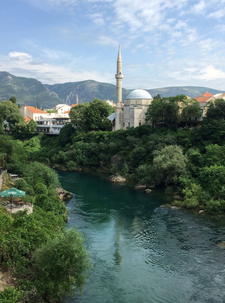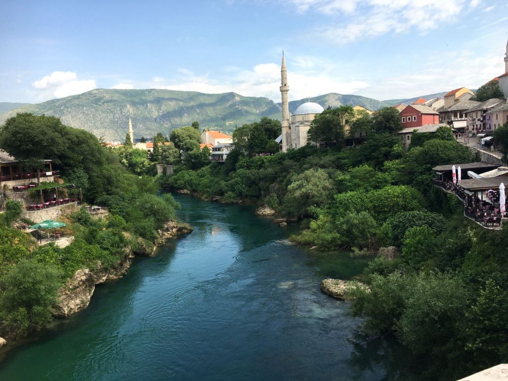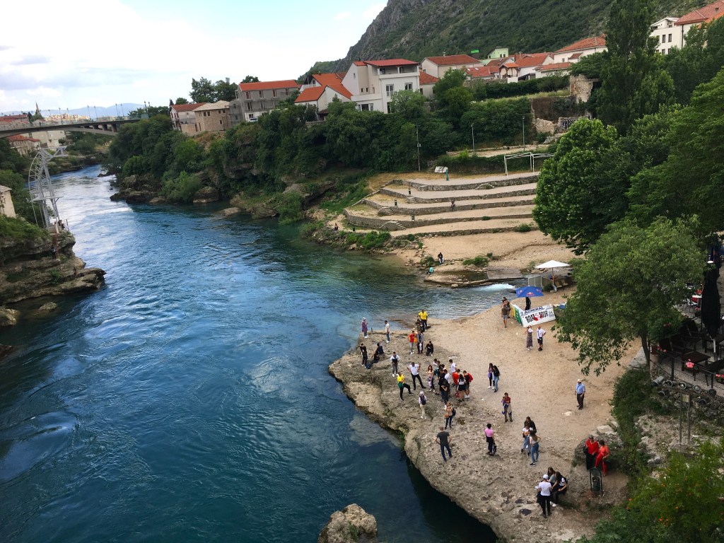 A maior parte das cidades bósnias é bem pequena e cercada de montanhas ou desfiladeiros de rios. Adoramos cidades cortadas por rios… elas tem muito charme e principalmente, vida! É o caso de Mostar, que é linda, mas quente… muuuito quente! Entretanto, ela conta com o lindo Neretva pra aplacar o calor e dar de beber a toda a gente… uma dádiva.