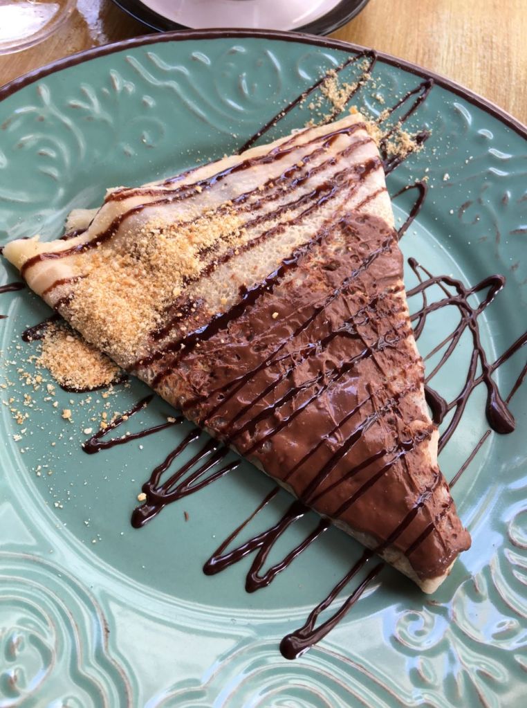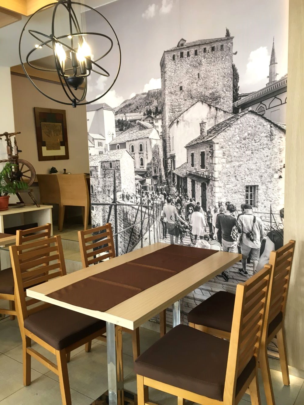 Aí o café da manhã no hotel era 6 euros por pessoa. Achamos caro e resolvemos comer na rua. Acontece que o povo aqui toma o café da manhã bósnio, ou seja, logo cedo eles comem: čevapi (linguiça de carne de carneiro com pão pita e cebola) um cafezinho turco (café preto forte como tinta), tomate, pepino e iogurte. Em tudo quanto é birosca que dizia “café da manhã” era a mesma coisa! Por fim, encontramos o Mozzarella que tinha café com leite (oh Glória!) e uma panqueca com nutella… Ele fica na rua Soldina, # 9.
