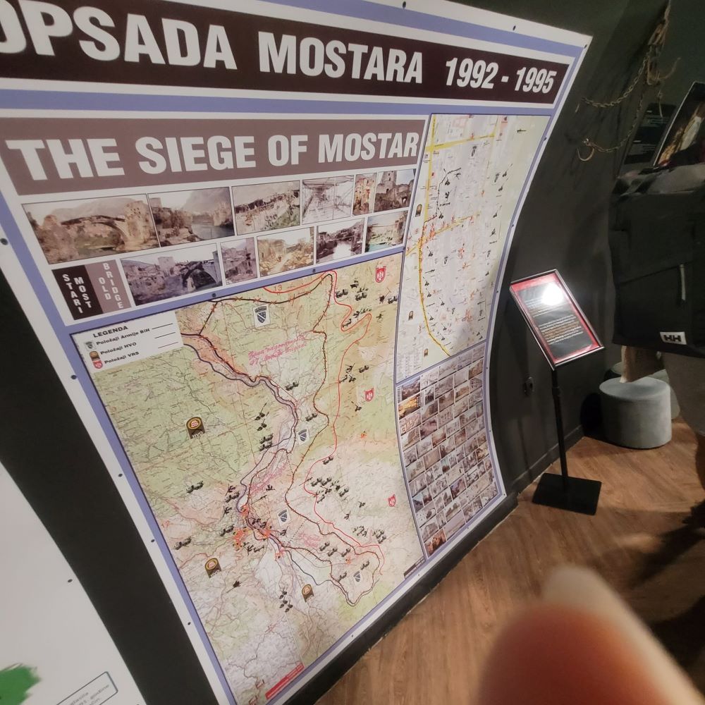O Museu da Guerra e Vítimas do Genocídio mantém viva a memória dos mais de 100 mil mortos na Guerra da Bósnia. Enquanto o Museu da Guerra de Sarajevo (que visitamos em 2019) foca nos 4 anos de cerco à cidade, o de Mostar trata do horror do extermínio em massa nos pequenos povoados, como o de Prijedor, e dos campos de concentração espalhados pelo país pelo exército de Slobodan Milošević. Há vídeos das execuções e torturas, pois os assassinos filmavam suas ações. Há também dezenas de cartas, documentos e relatos. Ele fica na rua Maršala Tita, 130 e é mantido por parentes das vítimas. Vale muito visitar.
