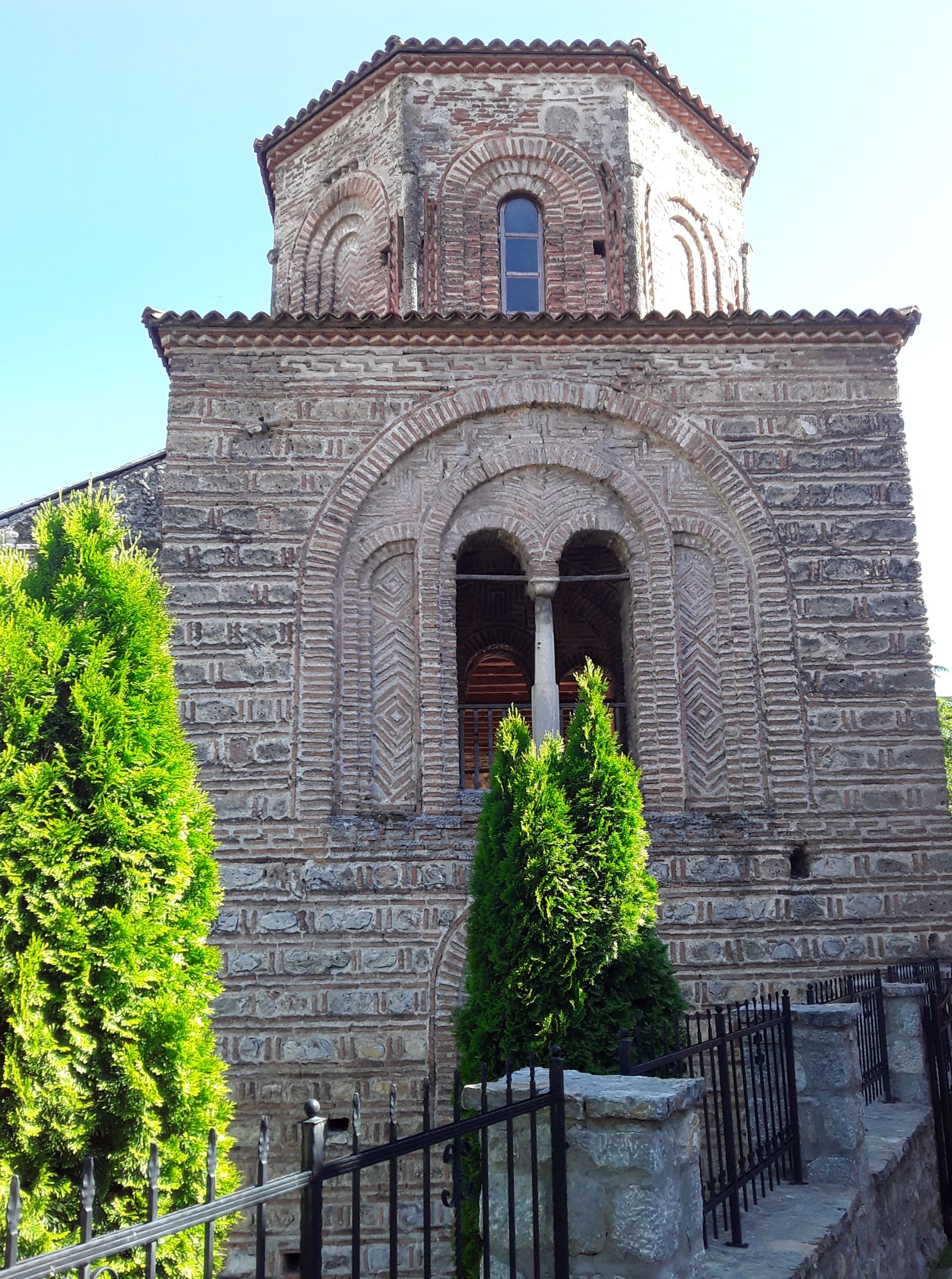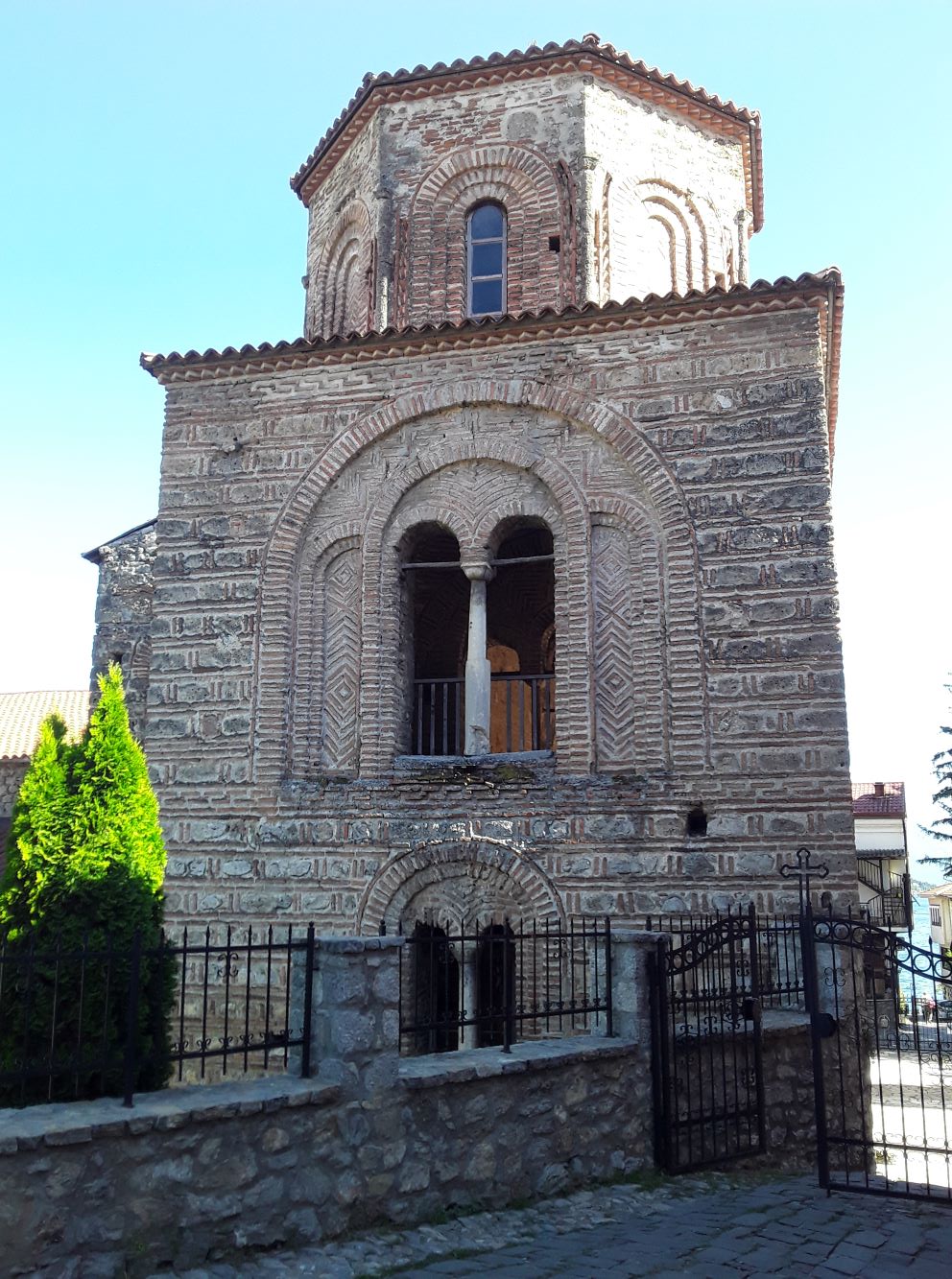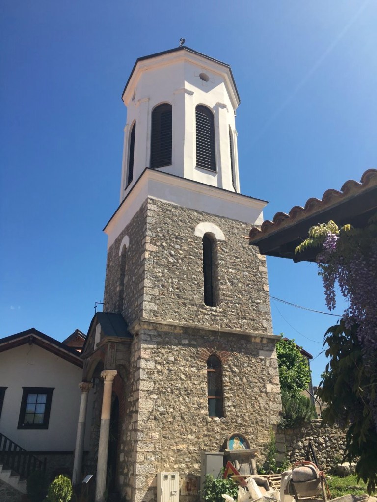 A igreja foi construída entre 1313 e 1314 pelo fundador e arcebispo Nikola de Ohrid. Infelizmente estava fechada quando passamos por lá. Um artefato raro da igreja é a porta da entrada, esculpida em madeira. Ela hoje está no Museu Arqueológico e Histórico de Sofia, que tivemos a sorte de visitar quando fomos à Bulgária.