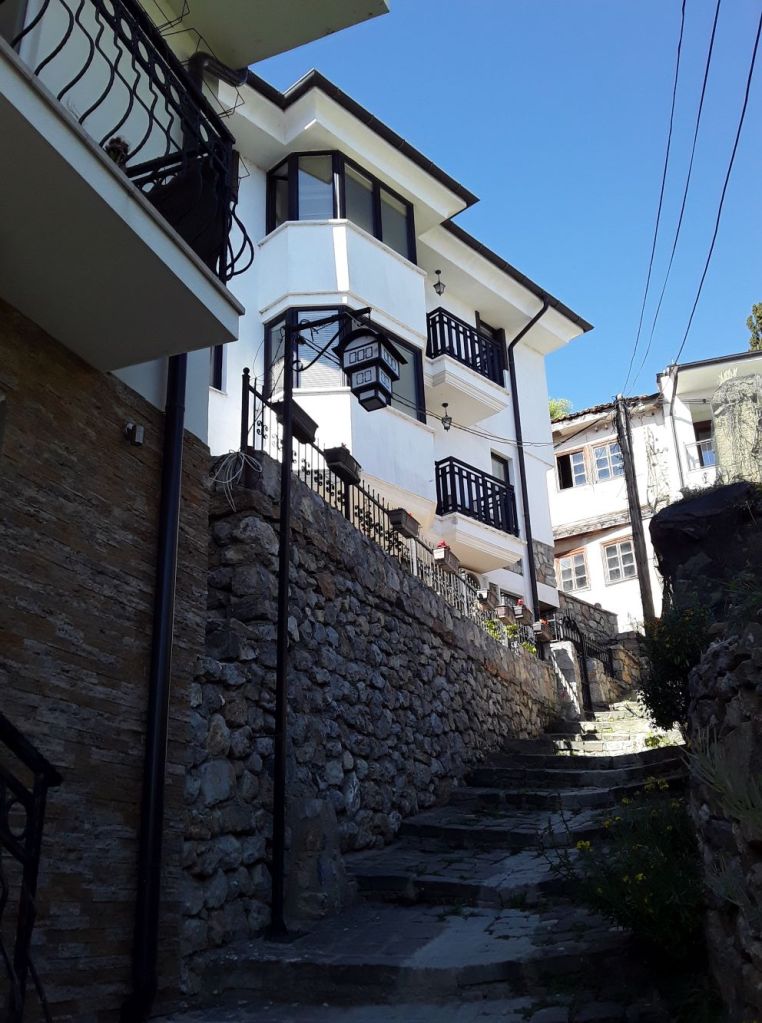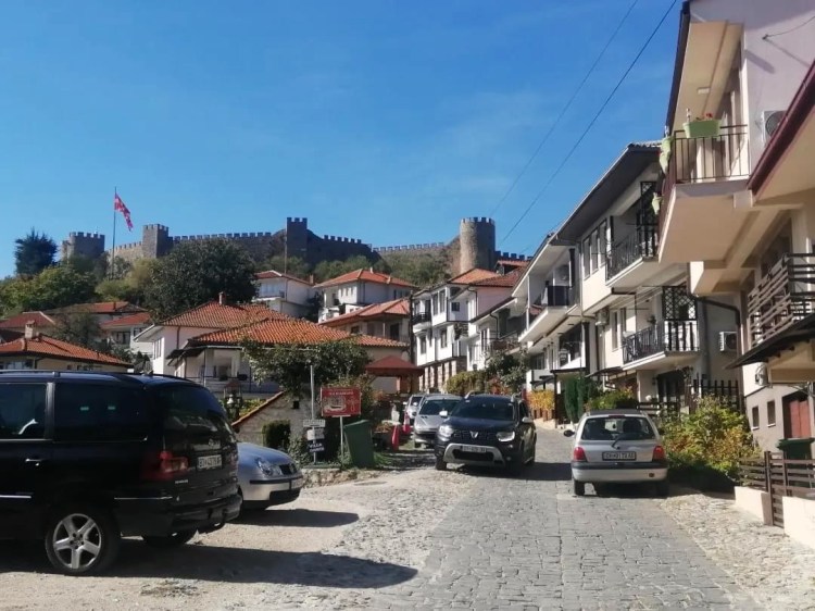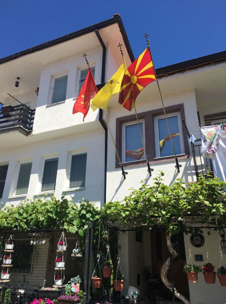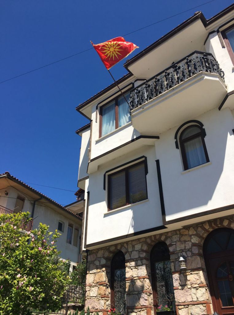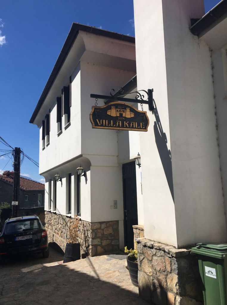 Pagamos mais 6000 lekes (cerca de R$370), para um trajeto de 1h30, mas chegando na fronteira, ele já tinha negociado para outro táxi nos esperar. Então fizemos a alfândega, já dentro do carro com o Sr. Agram, que nos deixou na porta do nosso hotel na cidade velha de Ohrid. Detalhe, o Sr. Ariam não falava inglês! Mesmo assim nos comunicamos com um pouquinho de italiano (que ele entendia bem e a gente falava mal) e muita boa vontade.