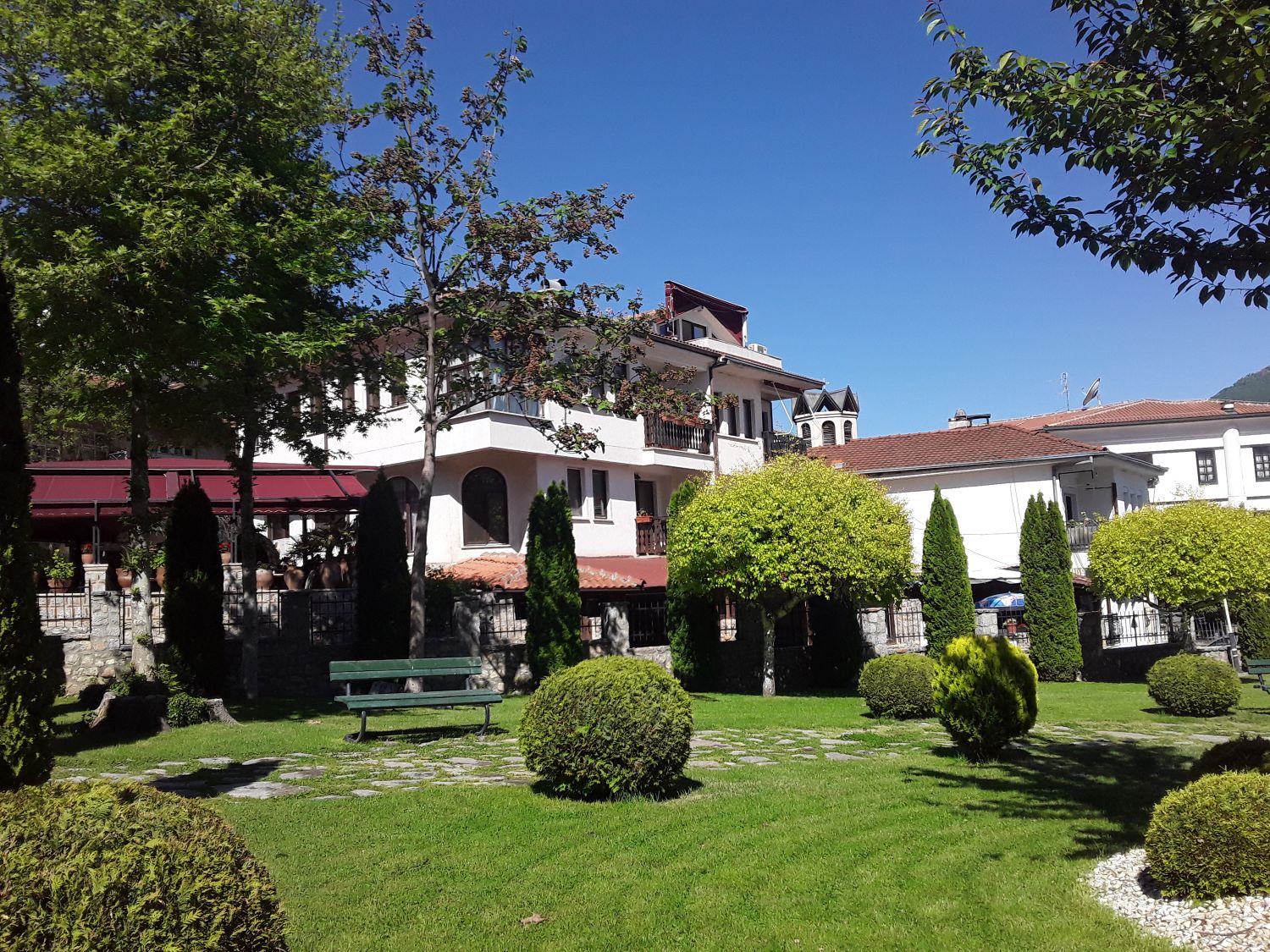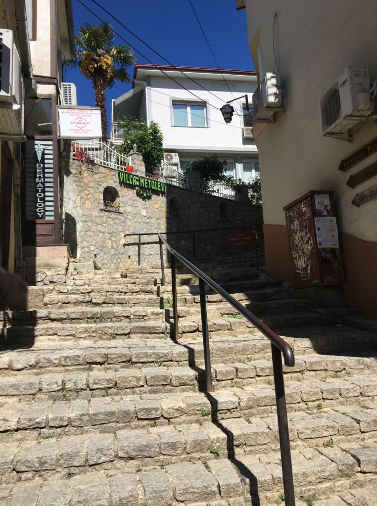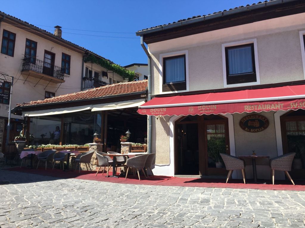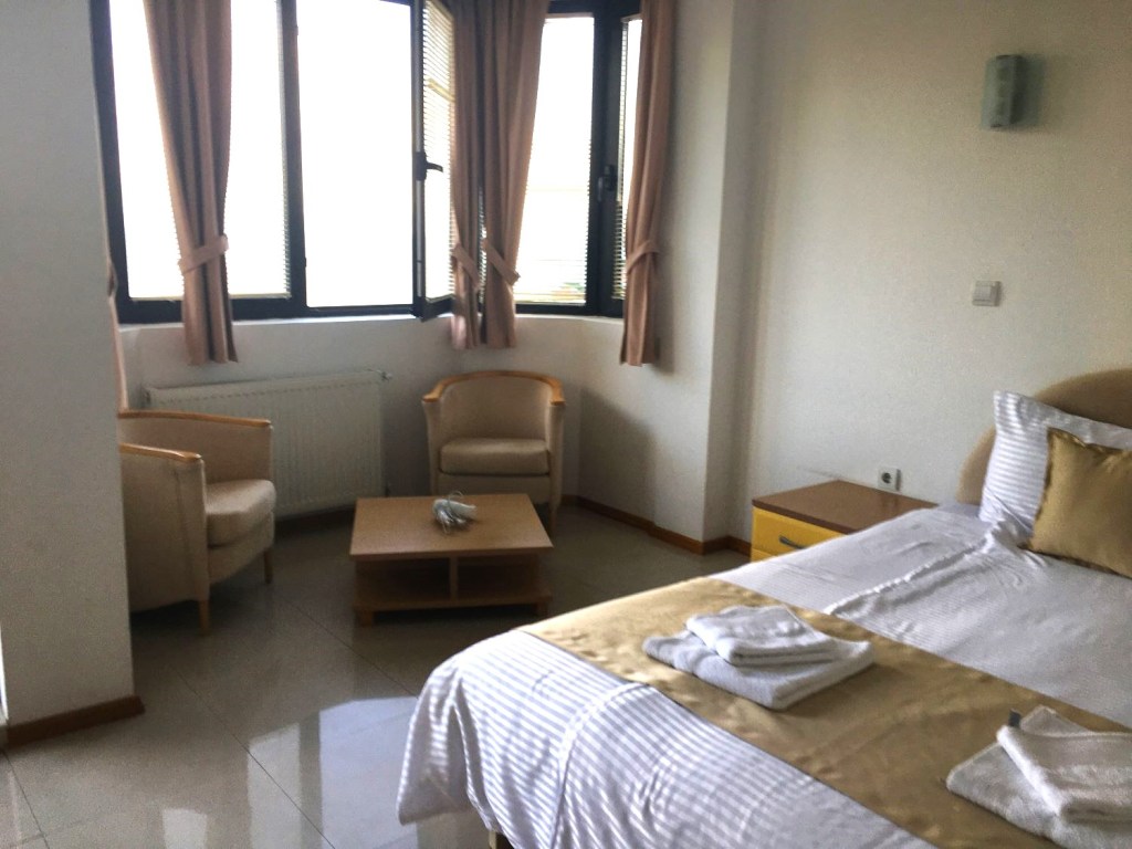 Como sempre, queríamos ficar no bairro mais antigo, por isso escolhemos o Villa Kale, na rua Klimentov Universitet. Acertamos em cheio na localização, pois ele fica em Varosh aos pés do Castelo e a poucos minutos do Anfiteatro Romano e da Sveta Sofija. Fizemos tudo a pé. O café da manhã era continental e bem servido. Nosso quarto era agradável, bem decorado e tinha vista para o lago.