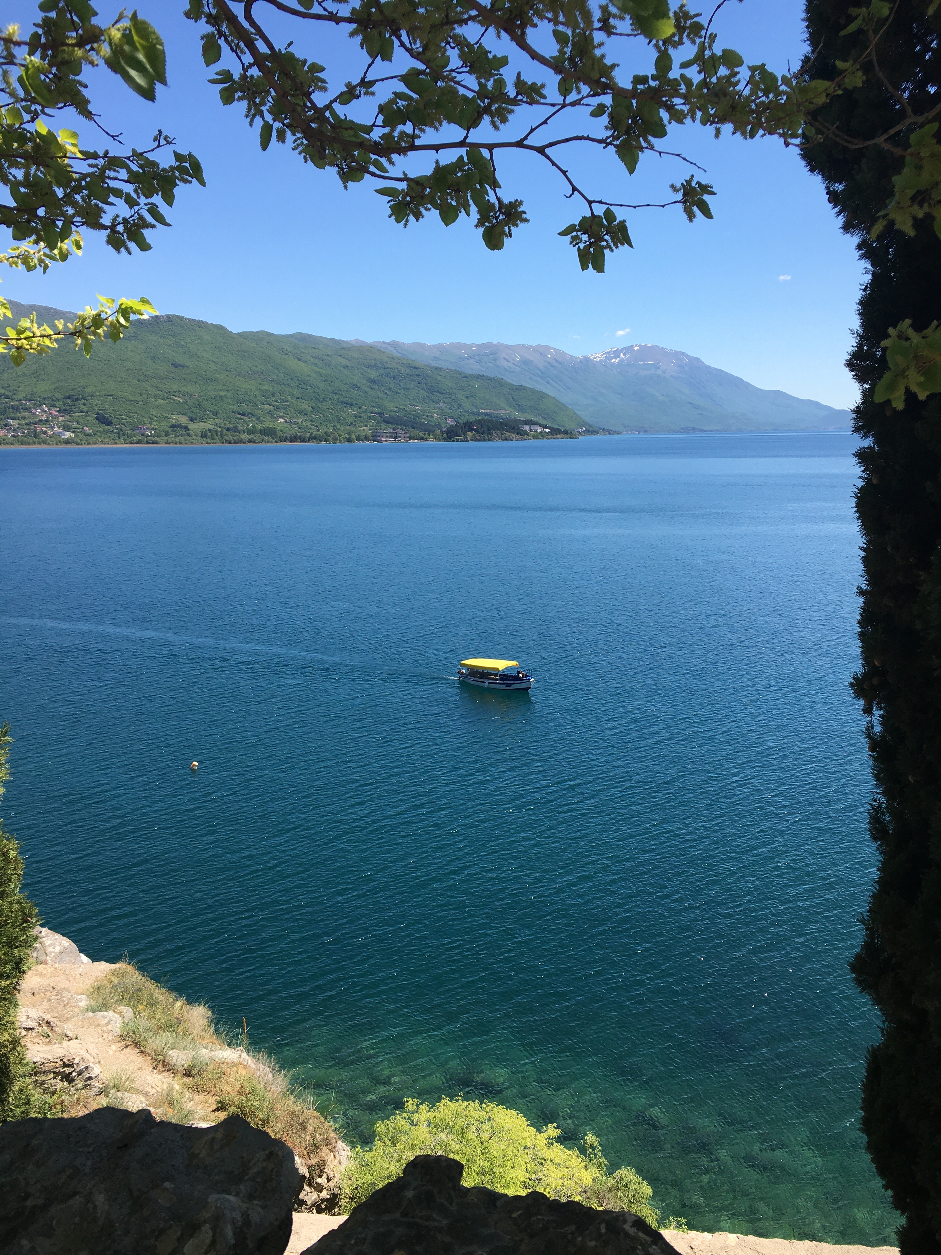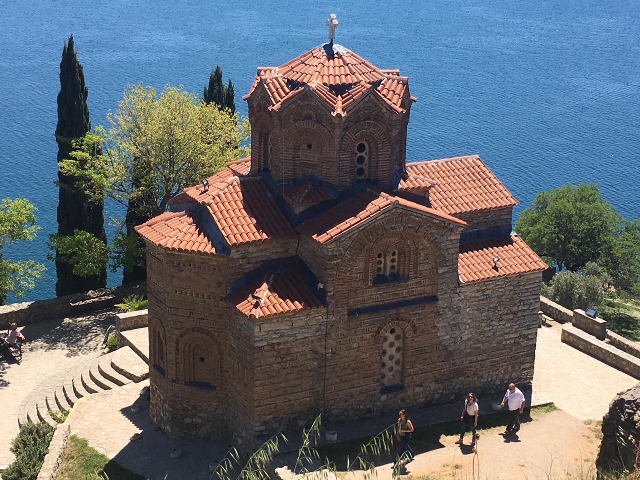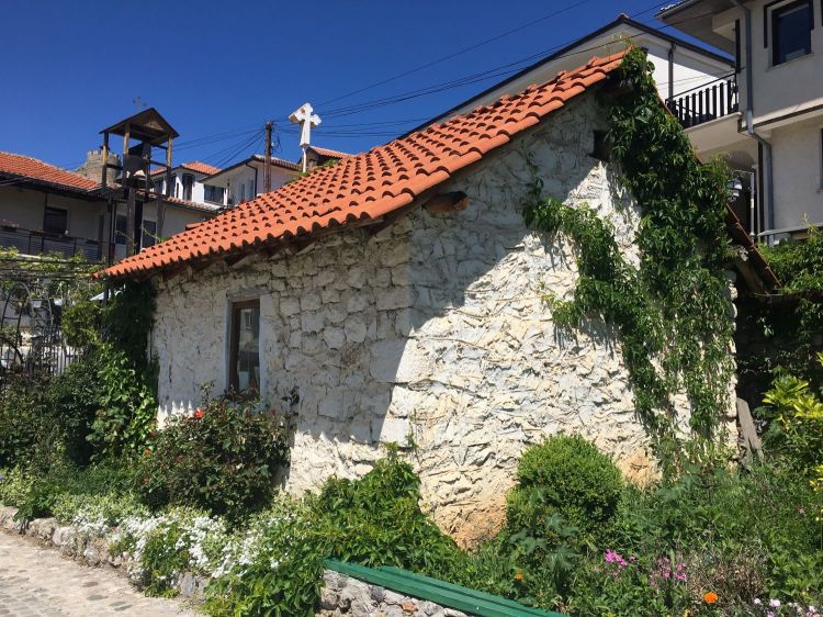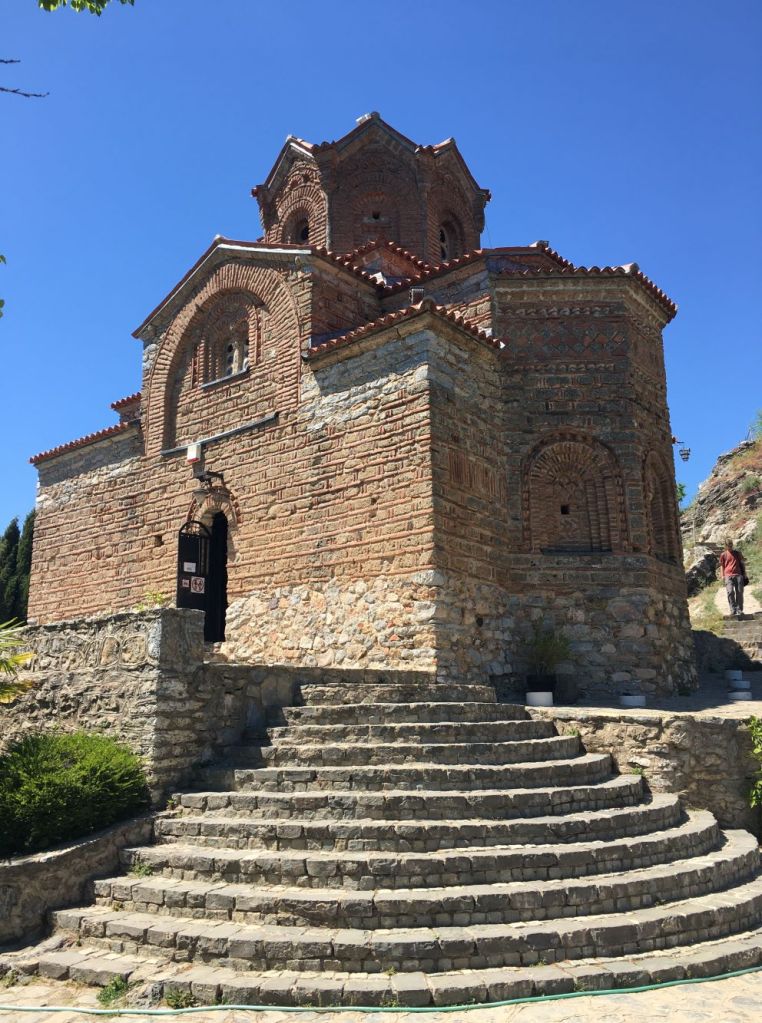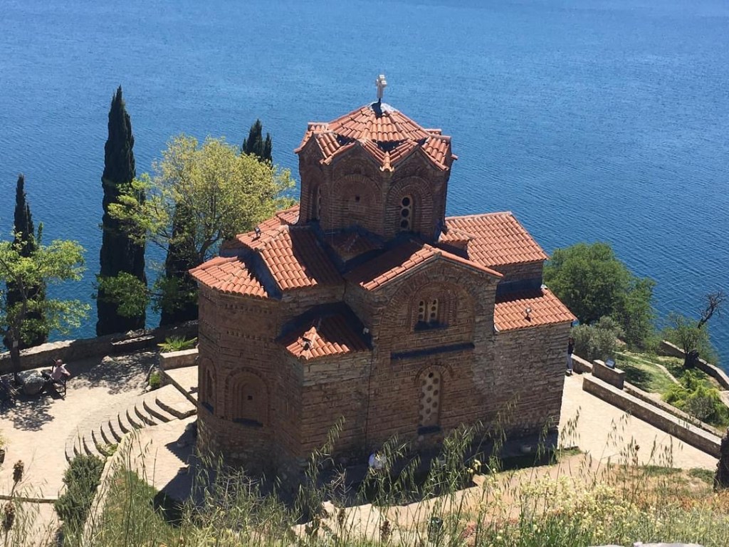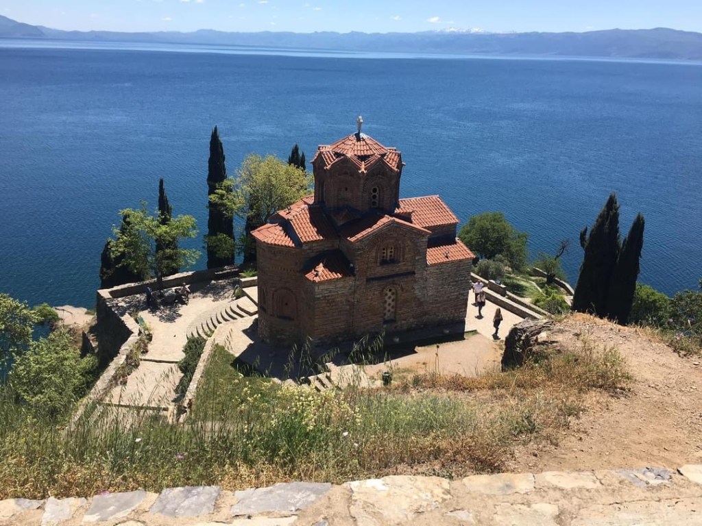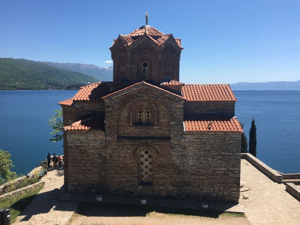 Descemos a trilha de Plaosnik em direção à Sveta Jovan, a igreja de São João Apóstolo. Não se sabe ao certo a data da construção dessa igreja em formato de cruz no penhasco do lago, mas arqueológicos acreditam que tenha sido por volta do século XIII, bem antes do auge do império otomano (1447). Ela pertence ao bairro de Kaneo, a tradicional vila de pescadores de Ohrid. Como ficou abandonada por muitos séculos, acabou não sendo destruída e pôde preservar seus ícones. E por falar em ícone, ela é o ícone da cidade e seu maior cartão postal.