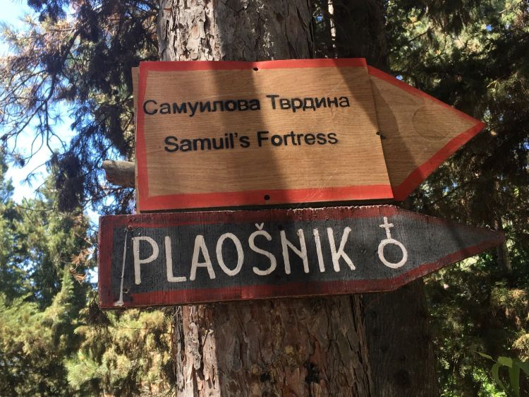 Ele fica em Plaosnik, um pouco fora da cidade velha (Varosh), mas dá para ir a pé. Chegamos lá descendo por um caminho no meio do bosque do Old Town City Park, que começa logo abaixo da Fortaleza de Samuel.