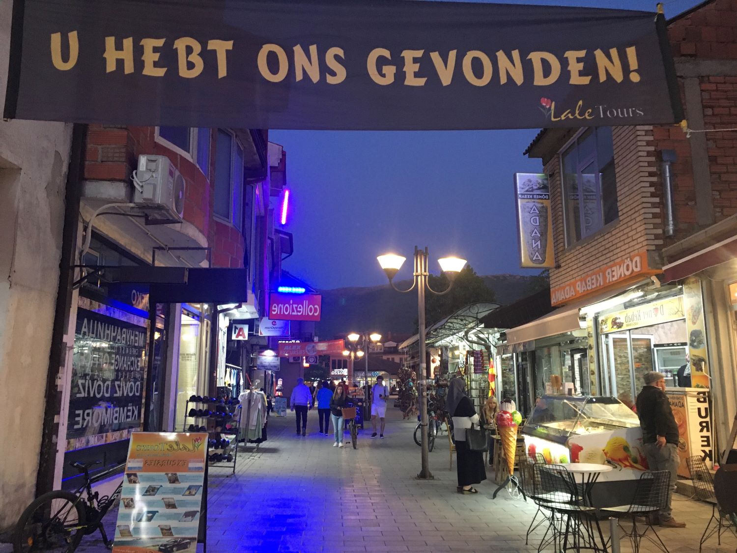 Última noite na cidade, marcamos com o Robert e a Iwona de nos encontrar no Viva Ksantika para nos despedimos de Ohrid. No dia seguinte eles seguiriam viagem, de carro, para uma cidadezinha no interior, para um casamento e nós, sairíamos cedo em direção ao Kosovo.
