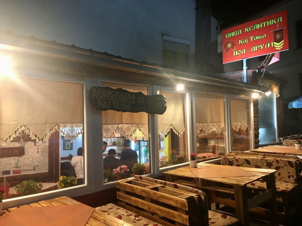 O restaurante fica na rua Samuilova, 23 e é bem tradicional e barato. Não falavam inglês, mas o cardápio tinha a tradução dos pratos e comemos uma mussaka e um pimentãozinho recheado muito gostosos. Bebemos uns copos de vinho, umas rakijas, conversamos bastante e saímos trançando as pernas… tanto que até nos perdemos um pouco para achar o Villa Kale em meio às ruelas estreitas e escuras…