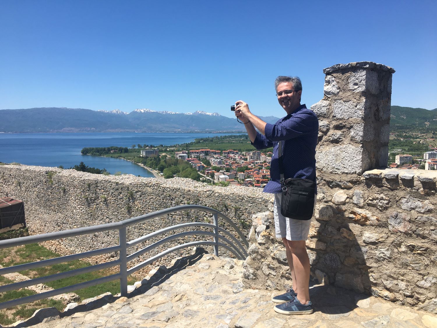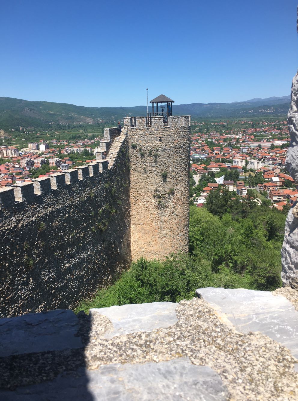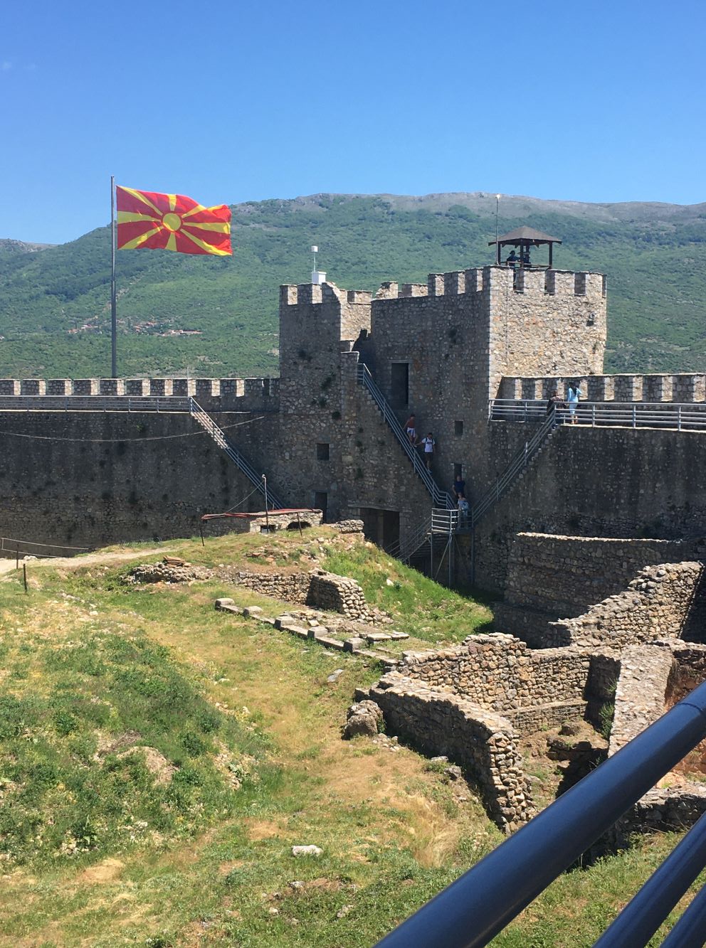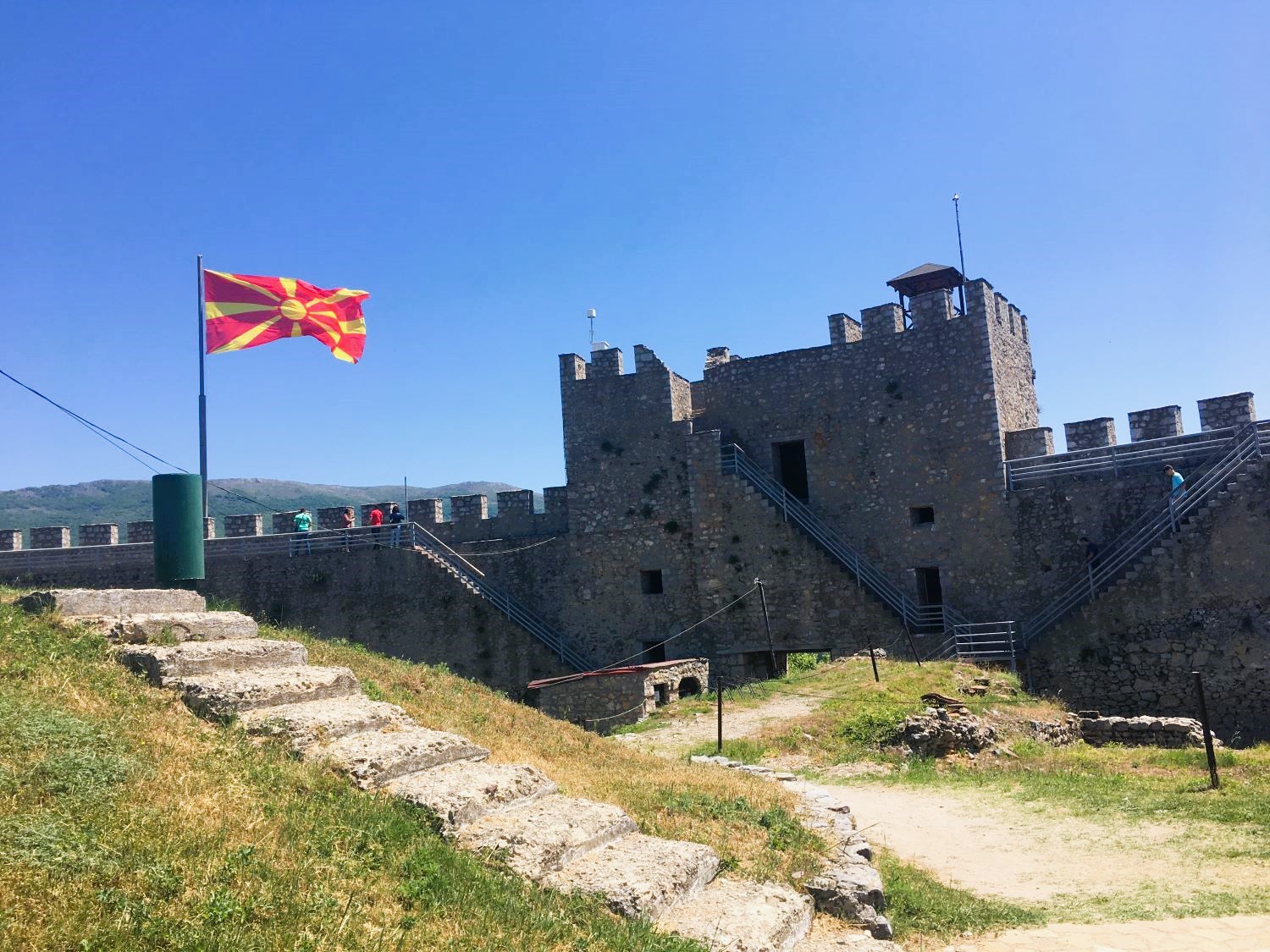 Passando o anfiteatro, seguimos a trilha até o castelo, conhecido como Fortaleza de Samuel. É a maior fortificação medieval da Macedônia. Foi construído no lugar de um outro ainda mais antigo, de 209 antes de Cristo e erguido pelo Rei Felipe II, pai de Alexandre – O Grande (aquele do filme de Olivier Stone!). Ele foi conquistado e reconstruído várias vezes, por romanos, bizantinos, eslavos e turcos otomanos.