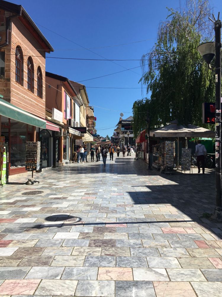 Varosh é o melhor lugar para se hospedar, mas Mesokastro, o bairro formado pelas ruelas acima da Old Bazaar, também é uma boa opção. No passado era onde os pobres viviam. Hoje, tem casas antigas e belas vistas do lago. A Old Bazaar, a rua principal do centro, é fechada para carros. Como o nome diz, é a rua do antigo mercado, portanto há lojas dos dois lados. Ela se parece muito com a Stradum de Dubrovnik com seu piso simétrico e reluzente. No final dela começam a aparecer restaurantes e bares.