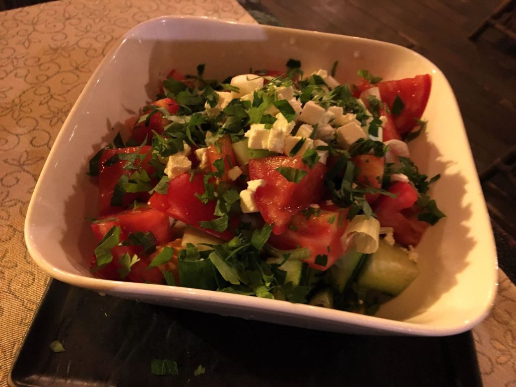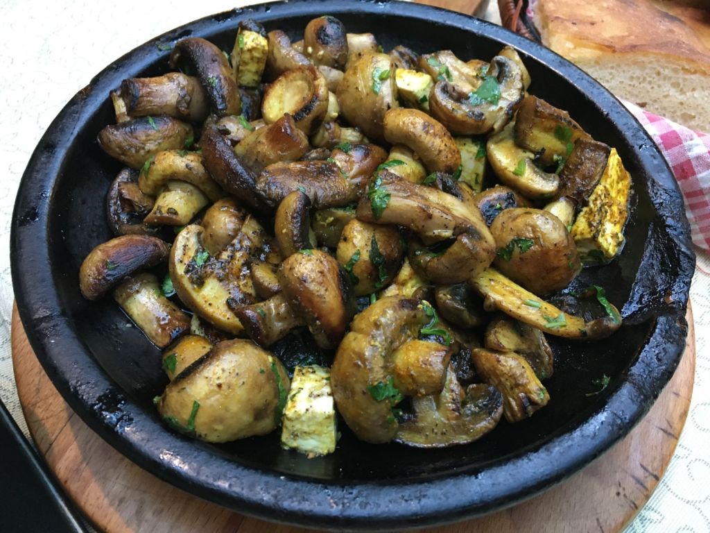 Começamos bem em Pristina enchendo o buchinho de comida tradicional e boa pra chuchu! (Além de barata!). Quando chegamos já demos de cara com várias policiais comendo lá. Muitas verduras e legumes fresquinhos e deliciosos em pratos bem preparados, alguns servidos escaldantes em sua frigideira, por 3 a 5 euros cada. Experimentamos a bruschetta (bukëza), os cogumelos salteados (kërpudha te freskëta me djath ne furrë), o peito de frango ao molho da casa (medaljon pule kosovare), a salada Liburnia e o tagliatelle com vegetais (jufka me perime me furrë).
