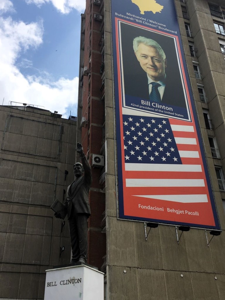 Quando o Kosovo declarou a independência em 17 de fevereiro, foi reconhecido como nação pelos EUA no dia seguinte. Por isso tem até estátua do Bill Clinton por aqui. Ela foi inaugurada por ele próprio há mais de uma década, e desde então continua sendo uma das excêntricas atrações da cidade, dado o seu cenário: em frente a um edifício cinza comunista. Uma réplica kitsch da Estátua da Liberdade também enfeitou o telhado do agora extinto Victory Hotel, até recentemente. Bem pertinho da estátua, tem uma loja de roupas chamada Hillary! Endereço: Bill Clinton Boulevard, esquina da Robert Doll Street. Essa rua fica próxima da rua George Bush!